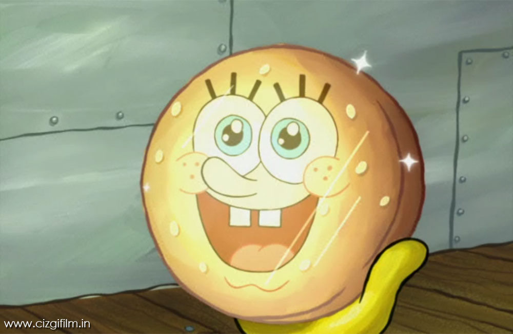 Sünger bob sezon 7 bölümleri arasýnda yer alan "Greasy Buffoons", Yaðlý yengeç burger bölümünde sünger bob'un burger köftesini temizleyip hazýrlarken Selfie görünümlü görüntüsü.